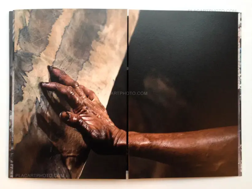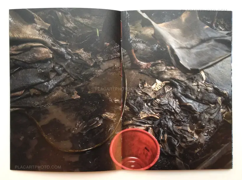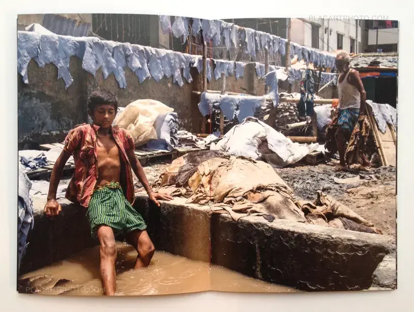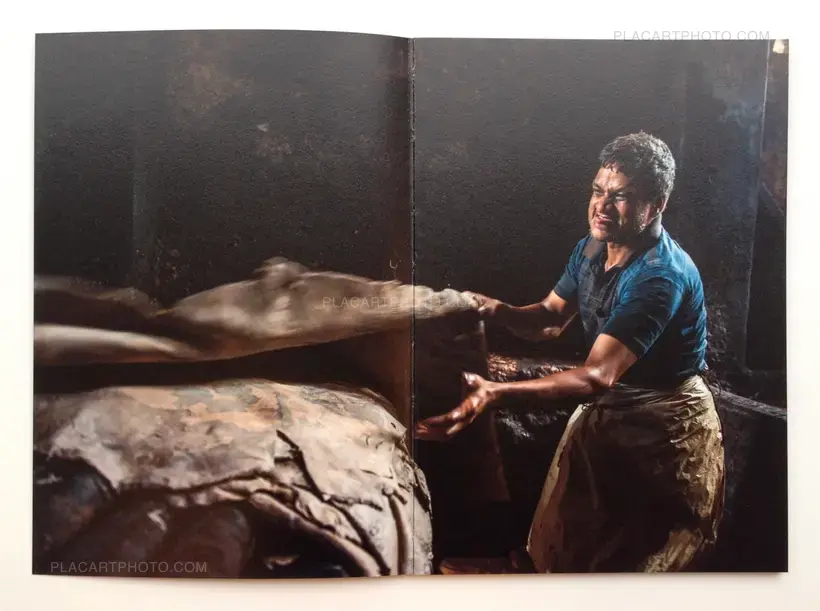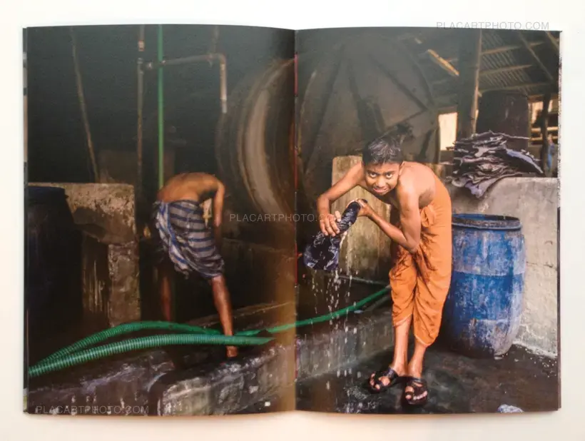 "As a photo book, I wanted people who take this book in hand to feel the traces of those leather tanning works. I made the leather book case for the book with the tanned leathers which are made by those workers of the factories in Hazaribagh by visiting there by myself in August 2015.